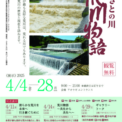 2025/04/11「ふるさとの川 荒川物語」開催中です福島市AOZ(アオウゼ)で開催中の「ふるさとの川 荒川物語」関連講座が、4月11… -