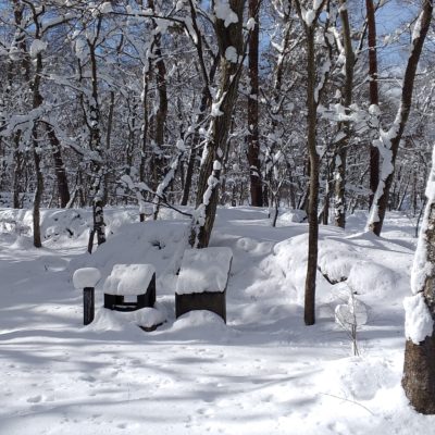 2025/02/08荒川流域の近景雪景色の水林自然林です。林内にある江戸時代に築堤された「霞提(かすみてい)」も雪… -