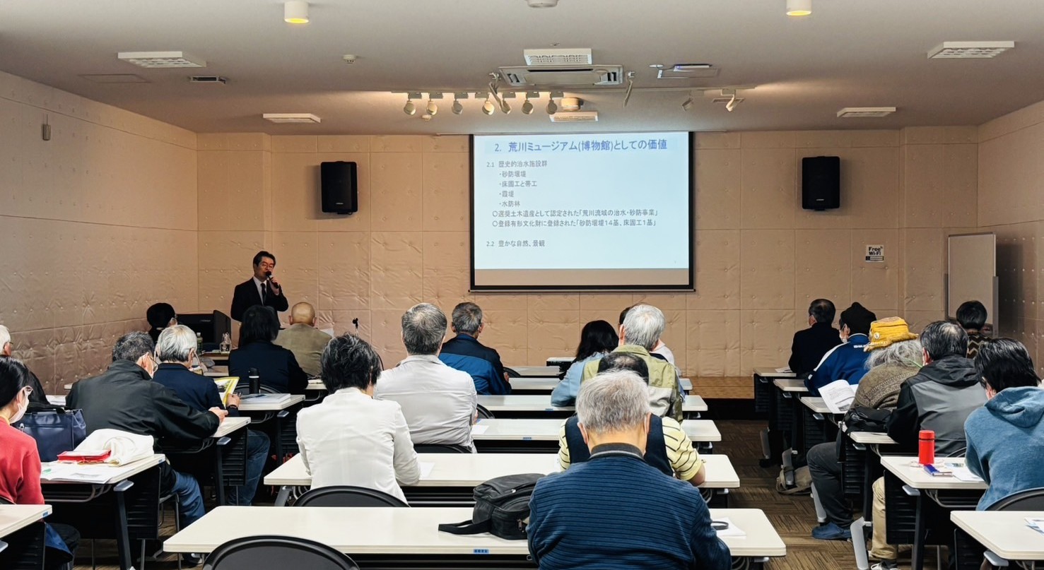 福島市AOZ(アオウゼ)で開催中の「ふるさとの川 荒川物語」関連講座が、4月11日(金)アオウゼ視聴覚室で行われました。テーマは「清らかな荒川を未来へ 引き継ぐために」、ふるさとの川・荒川づくり協議会の佐々木会長が、水質が最も良好な荒川の魅力と、清らかな荒川を未来へ引き継ぐ会の活動を解説しました。