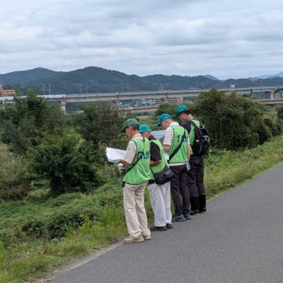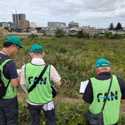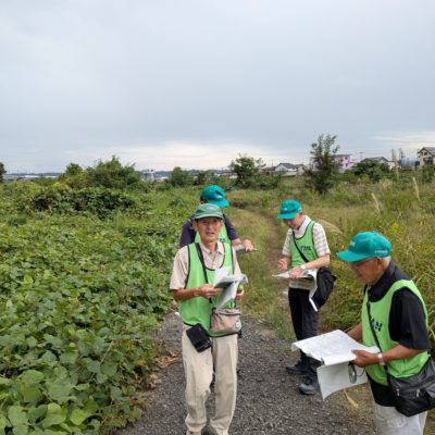 10月5日、曇り空の中、荒川流域八木田橋から信夫橋の間の外来種(アレチウリ、セイタカアワダチソウ)の分布状況を目視で調査しました。外来種は荒川右岸に多く繁茂が確認されています。