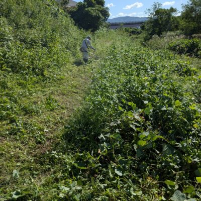 9月22日、日中暑さ厳しい中、西大橋下流付近から八木田橋上流付近まで除草作業を行いました。岸辺の散策やクリーン活動に支障がないように協議会会員4名で実施しました。