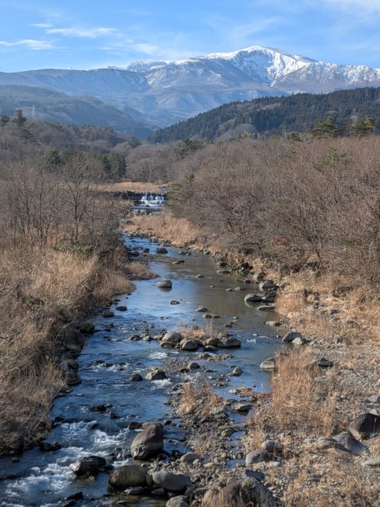 小富士橋から、吾妻小富士、上流の安達太良連峰、下流の福島市街地を望みました。本年も皆様方と一緒にきれいな荒川づくりを進めてまいります。